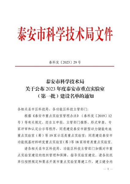 公司成功入選泰安市實(shí)驗(yàn)室建設(shè)名單